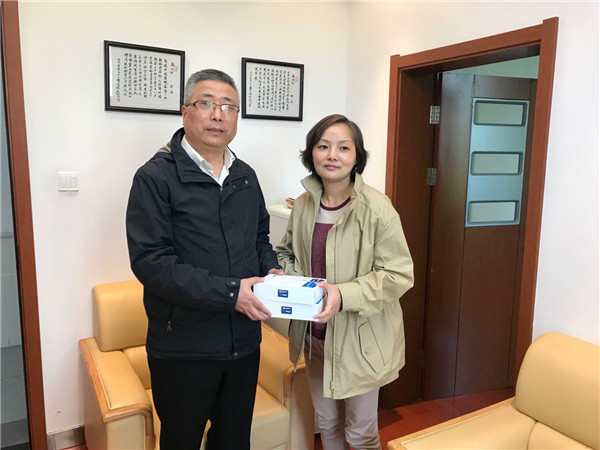 上海市迅行中學(xué)張建國(guó)校長(zhǎng)(右一)接受贈(zèng)與