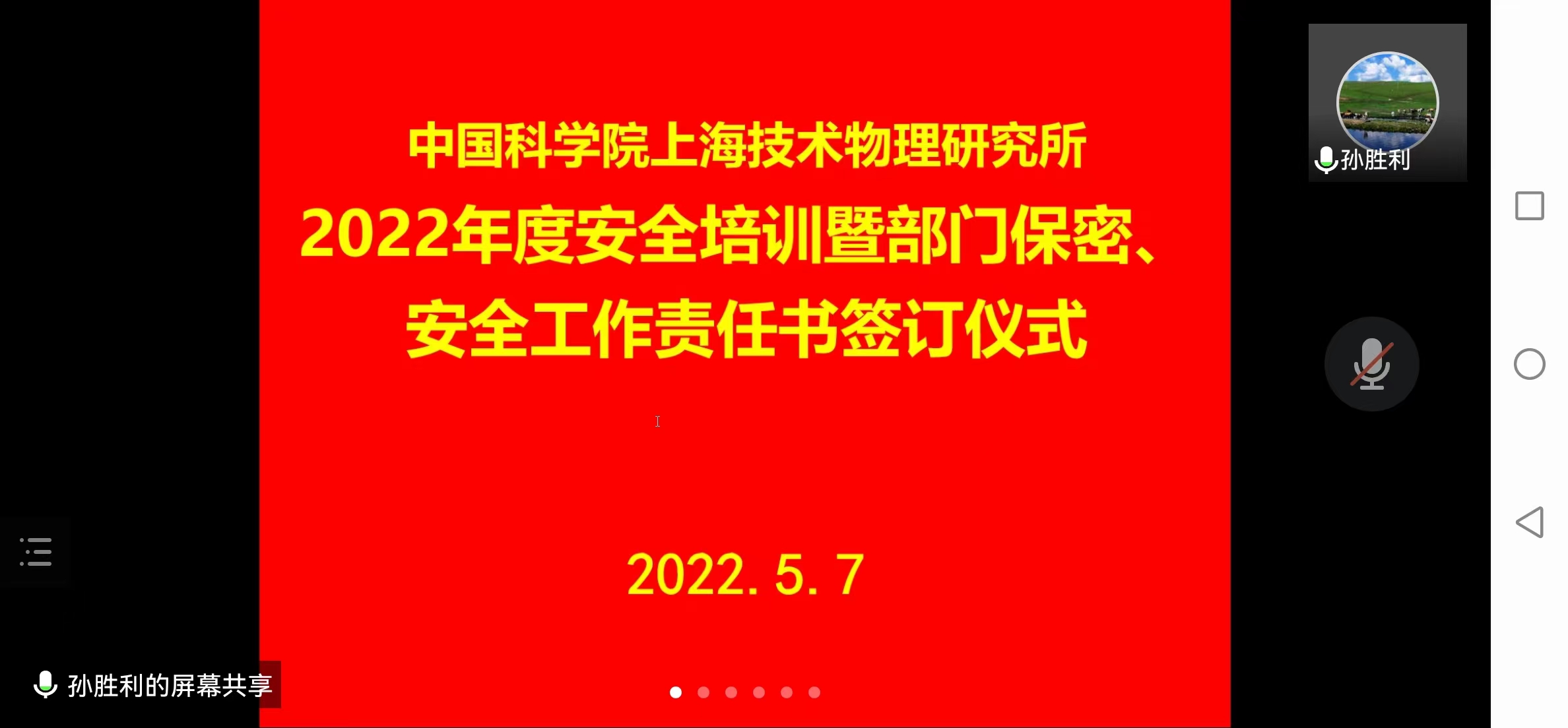為全面貫徹落實(shí)新安全生產(chǎn)法,進(jìn)一步夯實(shí)安全責(zé)任,5月7日上午,上海技物所舉行了2022年度安全培訓(xùn)暨安全責(zé)任書簽訂儀式。受新冠疫情影響,本次會議采取在線方式,由孫勝利副所長主持,所領(lǐng)導(dǎo)、各部門負(fù)責(zé)人及保障單位負(fù)責(zé)人出席了會議。