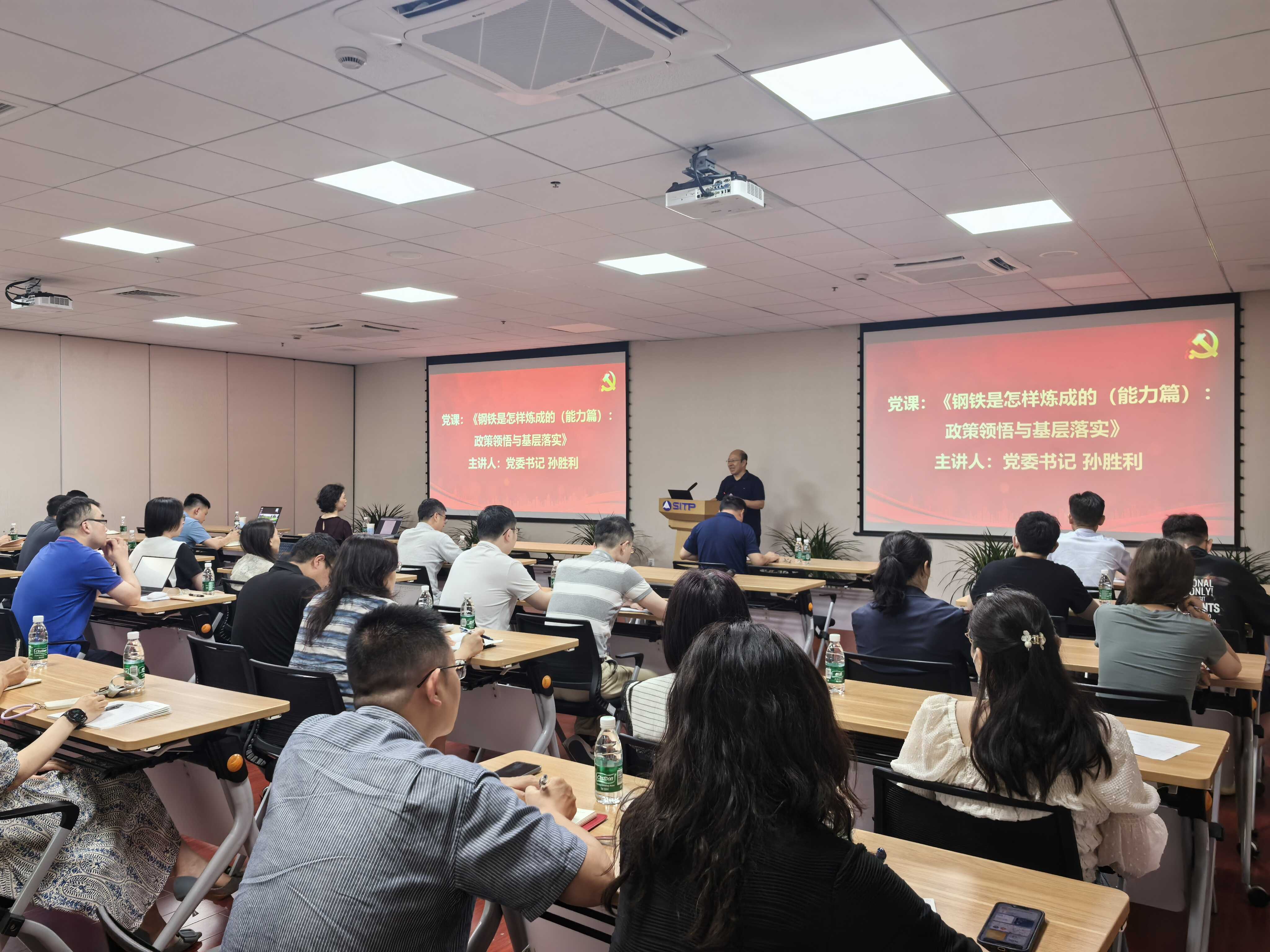 在活動中,黨委書記孫勝利以《鋼鐵是怎樣煉成的(能力篇):政策領悟與基層落實》為題,為同志們帶來了一場精彩的專題黨課。他從百年變局中的科技三會、二十屆三中全會后的科技體制、制度建設與機制創(chuàng)新的迭代,以及敢為人先的精神與堅守政治紀律、工作紀律的底線等四個方面進行了深入淺出的分享。他講到,在當前科技領域多技術交叉融合、創(chuàng)新范式呈現“鏈式”變革的背景下,科技管理人員應堅守底線、精準定位、主動作為,在深刻理解政策精神的基礎上,要勇于搶占各管理崗位的“制高點”,為科研人員主動提供更多指導性幫助,共同推動研究所創(chuàng)新科研生態(tài)的持續(xù)優(yōu)化。