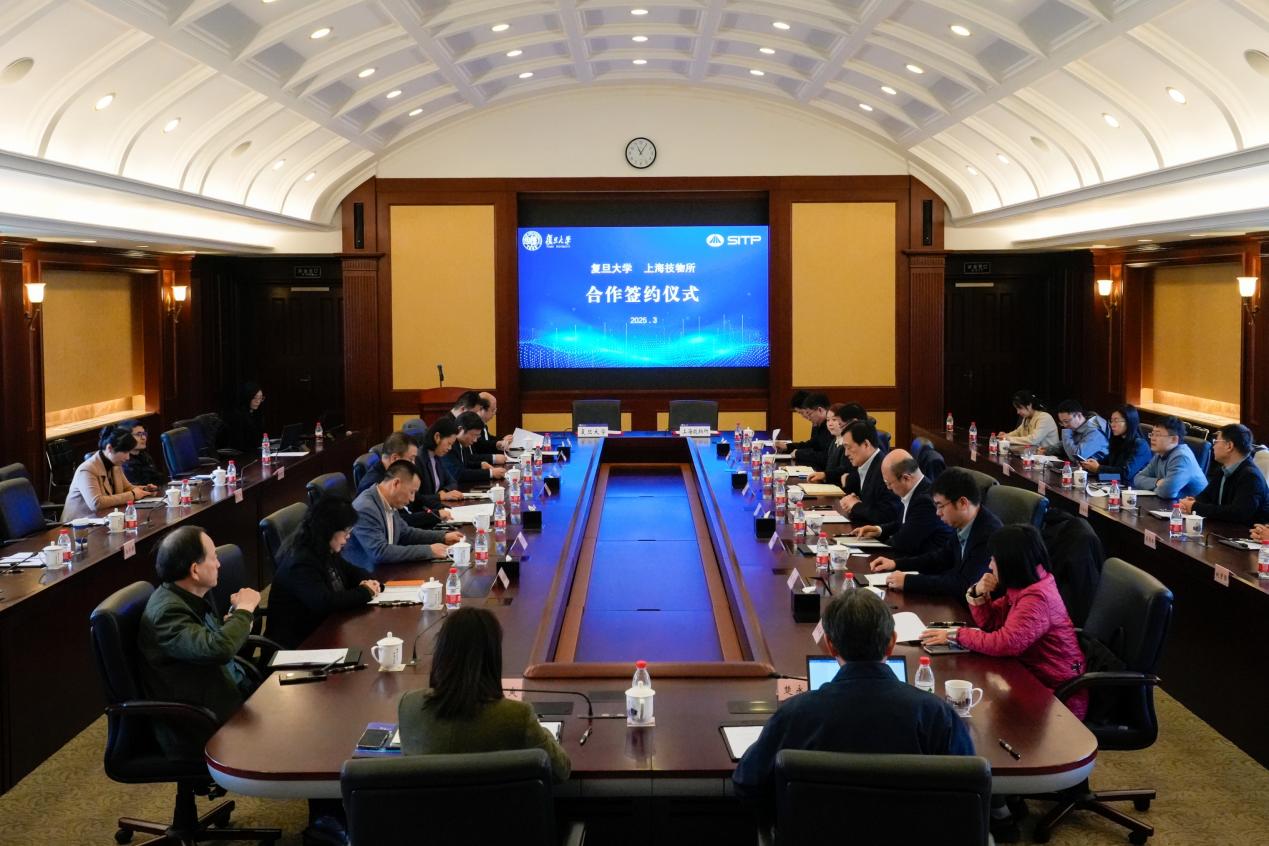金力代表學(xué)校向丁雷一行表示歡迎。他對(duì)合作提出三點(diǎn)期待:一是以使命為引領(lǐng),共擔(dān)國(guó)家戰(zhàn)略任務(wù),發(fā)揮復(fù)旦大學(xué)基礎(chǔ)研究?jī)?yōu)勢(shì)和上海技物所工程研制特長(zhǎng),聚焦空天信息、量子科技等前沿領(lǐng)域,組建聯(lián)合攻關(guān)團(tuán)隊(duì),突破關(guān)鍵核心技術(shù)。二是以創(chuàng)新為紐帶,共建科教融合生態(tài),打破學(xué)科壁壘,構(gòu)建“基礎(chǔ)研究-技術(shù)攻關(guān)-成果轉(zhuǎn)化”創(chuàng)新鏈。三是以人才為根本,共育時(shí)代強(qiáng)國(guó)棟梁,培養(yǎng)更多具有家國(guó)情懷、創(chuàng)新精神和實(shí)踐能力的復(fù)合型人才,為拔尖創(chuàng)新人才的成長(zhǎng)和國(guó)家高水平科技自立自強(qiáng)注入強(qiáng)勁動(dòng)力。