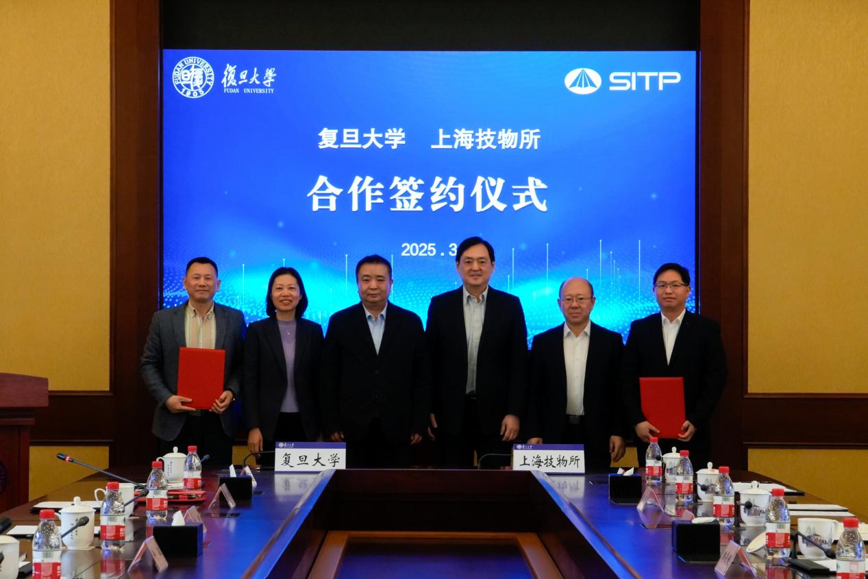 復(fù)旦大學(xué)校長(zhǎng)、中國(guó)科學(xué)院院士金力,常務(wù)副校長(zhǎng)許征,上海技物所所長(zhǎng)丁雷,上海技物所黨委書(shū)記、中國(guó)科學(xué)院院士孫勝利見(jiàn)證簽約。校長(zhǎng)助理、中國(guó)科學(xué)院院士彭慧勝,上海技物所副所長(zhǎng)陶俊超代表簽約。