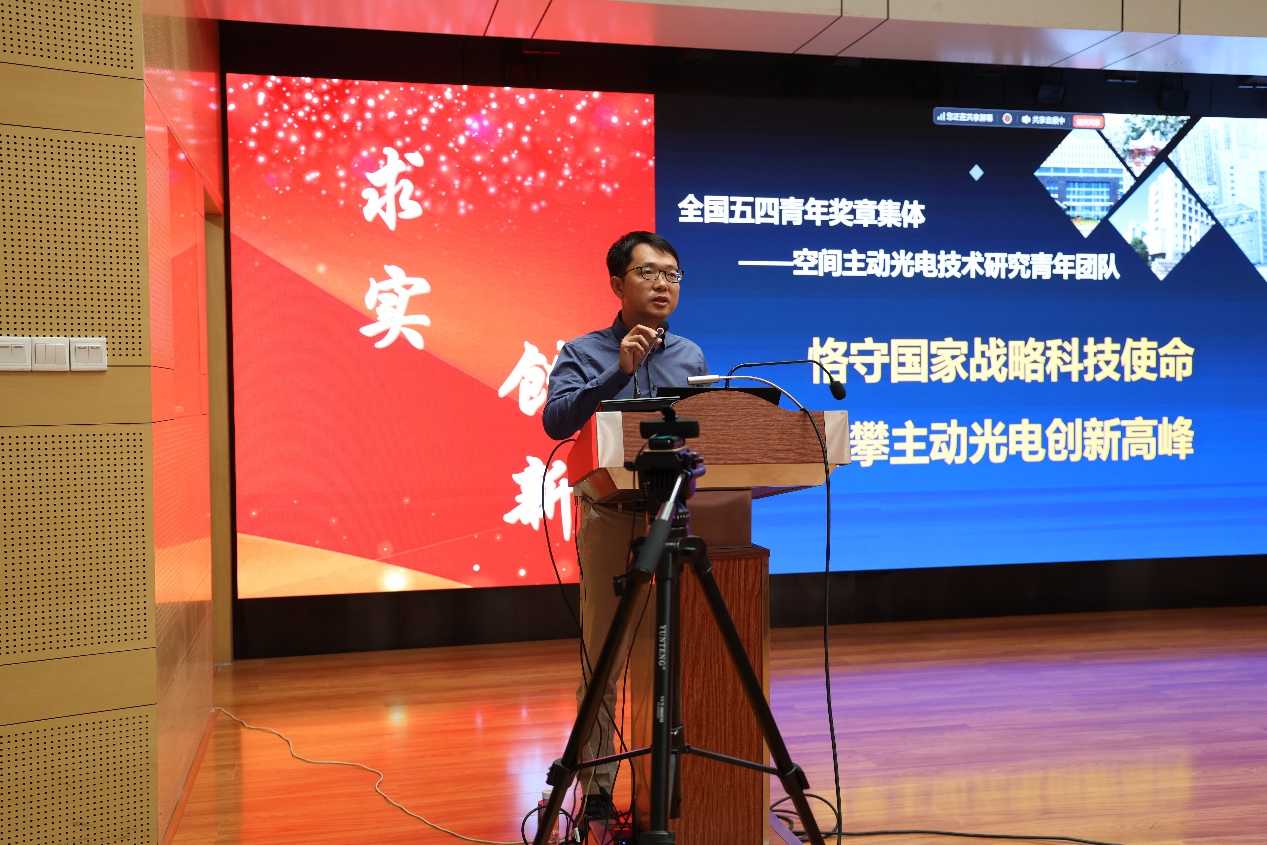 活動(dòng)伊始,來自2025年度中國(guó)青年五四獎(jiǎng)?wù)录w——上海技物所空間主動(dòng)光電技術(shù)研究青年團(tuán)隊(duì)的黃庚華研究員帶來精彩分享。他作了題為 “恪守國(guó)家戰(zhàn)略科技使命,勇攀主動(dòng)光電創(chuàng)新高峰”專題報(bào)告,詳細(xì)講述了青年團(tuán)隊(duì)在技術(shù)攻關(guān)與各項(xiàng)試驗(yàn)中的寶貴經(jīng)歷及豐碩成果。該團(tuán)隊(duì)積極承擔(dān)嫦娥工程、首次火星探測(cè)任務(wù)、高分辨率對(duì)地觀測(cè)系統(tǒng)重大專項(xiàng)、量子科學(xué)實(shí)驗(yàn)衛(wèi)星等多項(xiàng)國(guó)家重大任務(wù),聚焦深空探測(cè)、對(duì)地觀測(cè)和空間科學(xué)等大國(guó)博弈的科技制高點(diǎn),勇闖科學(xué) “無人區(qū)”,助力國(guó)家實(shí)現(xiàn)多個(gè)全球唯一,為科技強(qiáng)國(guó)、航天報(bào)國(guó)的宏偉篇章添上濃墨重彩的一筆。