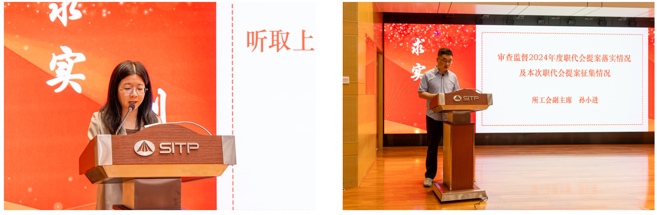 祝文潔作《上海技物所2024年度資產(chǎn)財(cái)務(wù)報(bào)告》和《上海技物所2024年度職工福利費(fèi)使用情況及2025年預(yù)算報(bào)告》,孫小進(jìn)作《監(jiān)督上海技物所2024年度職代會提案落實(shí)情況及本次職代會提案征集情況》報(bào)告