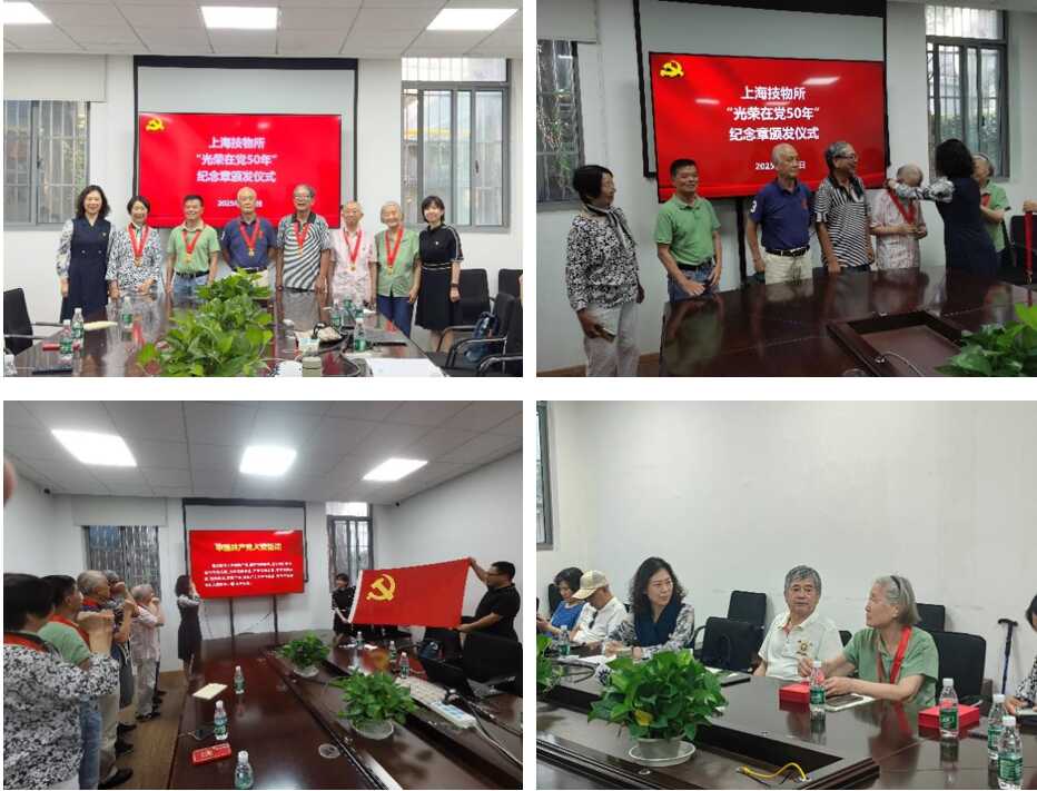 7月1日下午,上海技物所舉辦“光榮在黨50年”紀念章頒發(fā)活動,所紀委書記、退管會主任程睿代表所黨委為新增黨齡滿50年的老黨員代表佩戴“光榮在黨50年”紀念章。各退休黨支部書記、紀念章受頒發(fā)黨員、黨辦和退管會工作人員等參加活動。
