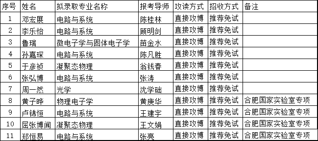 1、擬錄取直博生11名(其中國家實驗室聯(lián)合培養(yǎng)博士專項(合肥)4名):