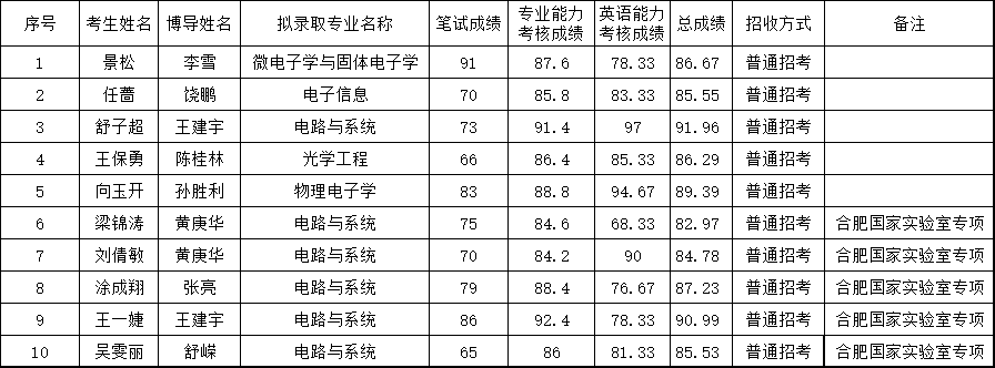 2、擬錄取普招博士生10名(其中國家實驗室聯(lián)合培養(yǎng)博士專項(合肥)5名):