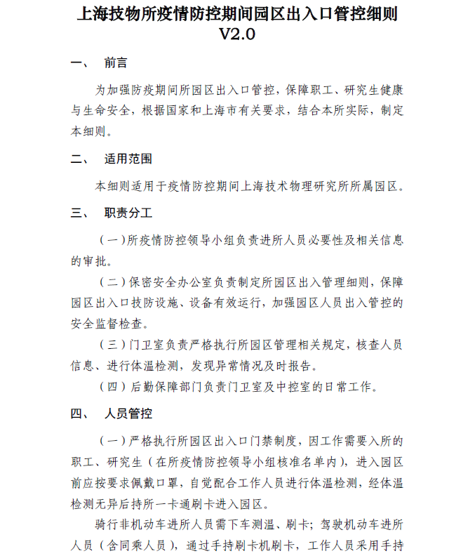 上海技物所疫情防控期間園區(qū)出入口管控細(xì)則
